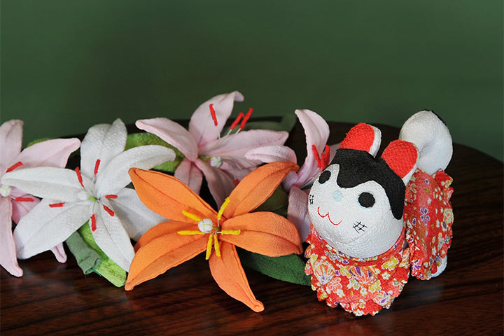 伊豆の稲取のお土産に貰った吊るし小物の”ちゃんちゃんこのうさぎ”があった。それを参考にうさぎを作りました。あとは本を参考に苦戦しながらなんとか最初の一本が出来上がり。